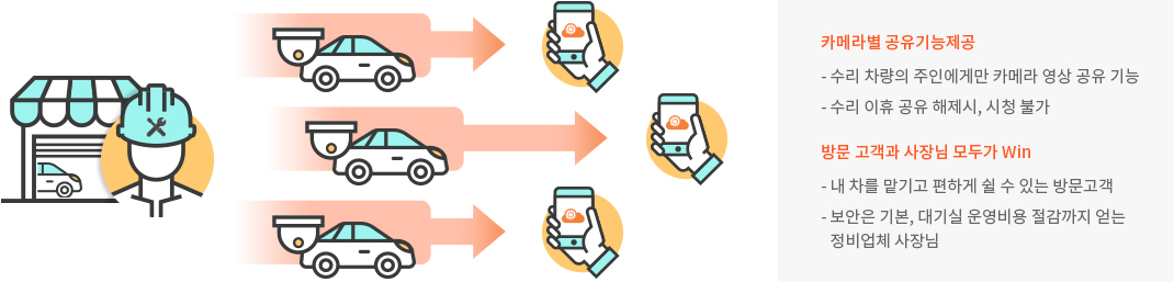“클라우드캠의 공유기능을 이용한 뒤로 고객만족도가 높아졌습니다. 고객 차량이 수리되는 동안