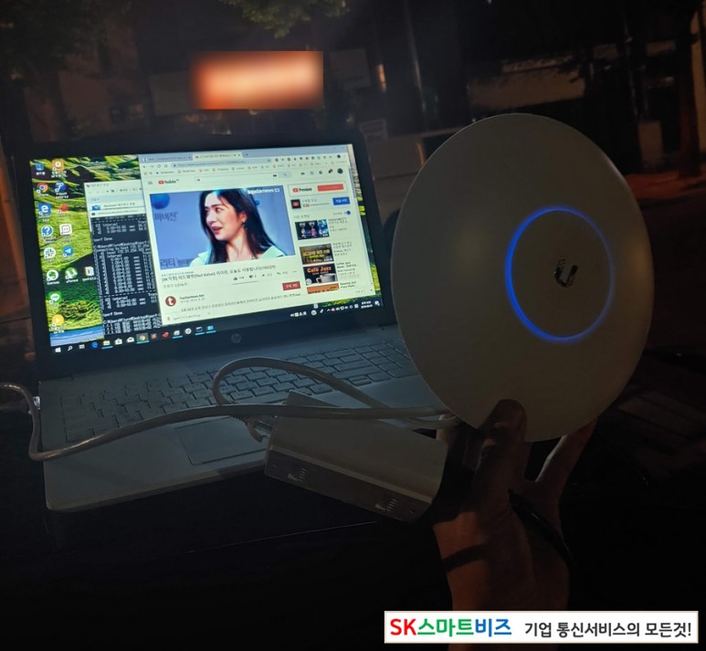 Wi-Fi 커버리지의 확장이 아닌 서브 AP에 세컨더리 랜포트를 유선 출력으로 해서 하단에 허브를 설치하여 랜 공사가 어려운 구간을 무선신호를 날려 극복한다는 시나리오로 작업했습니다.