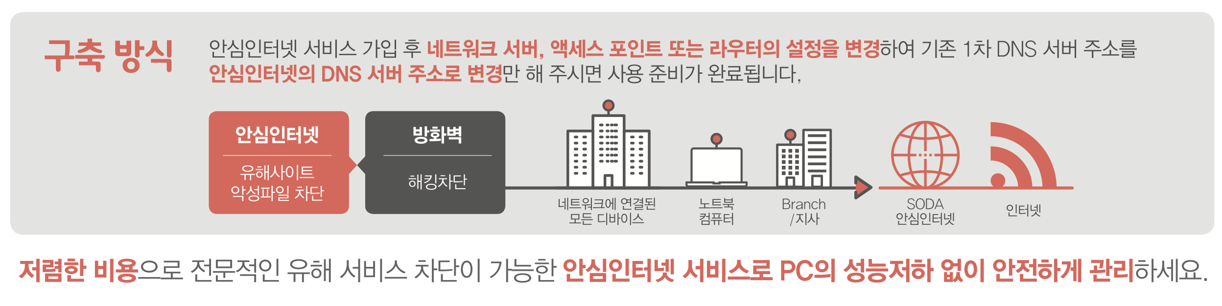 이제 PC나 UTM등의 설치가 아닌 DNS를 이용하는 혁신적인 서비스를 이용해 보세요.