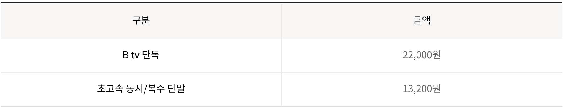 - 초고속 동시 : 초고속과 B tv를 동시에 설치하는 경우