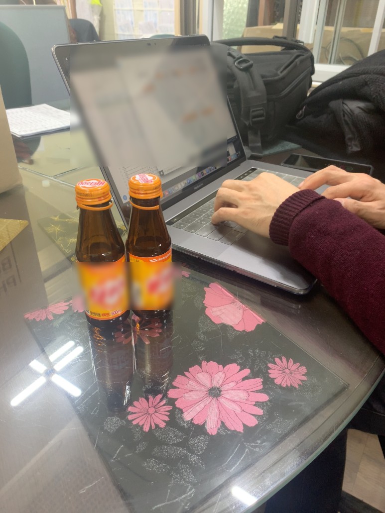 고생하신다며! 고객님께서 주신 비타음료를 먹고 힘을 내고 있네요! 화이팅 팀장님!