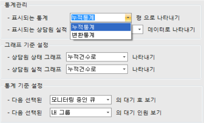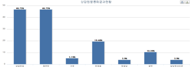 | 통계 | - 통화결과 현황 - 통화실적 현황 - 통화시간 현황 - 상담유형별 현황 - 상담유형별 통화결과 현황 |
