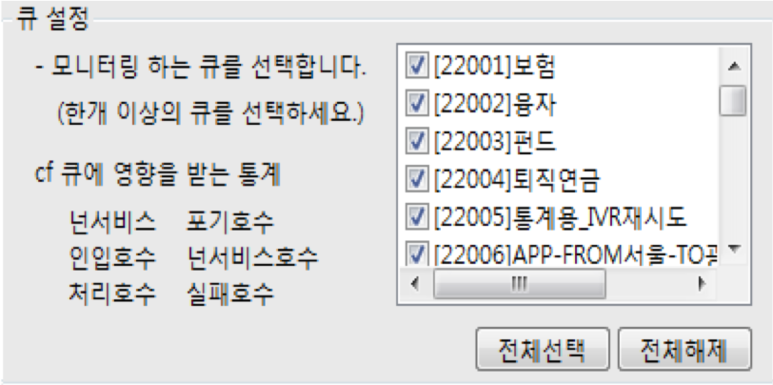 - 상담원(내선번호) • 상담원(내선번호)상태, • 총통화실적 • 상세통화실적 • 통화 외 점유 • 휴식 - 큐 실적 |