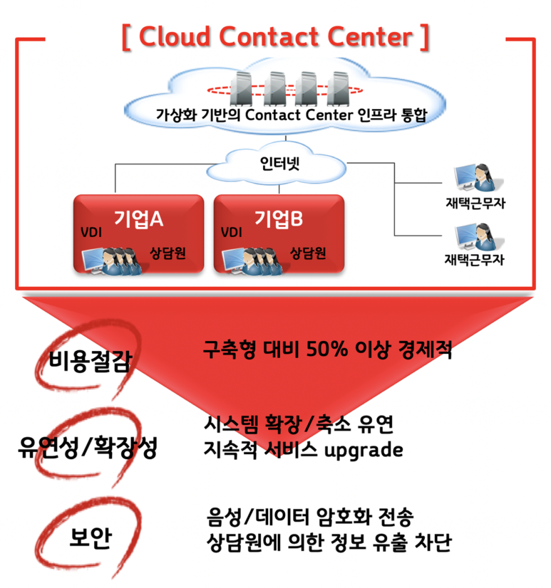 전통적인 콜센터(Contact Center)의 경우 전산담당자가 필요하고 고가의 구축비용,