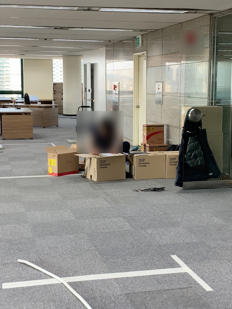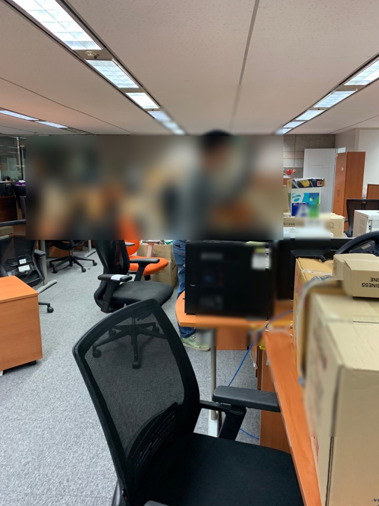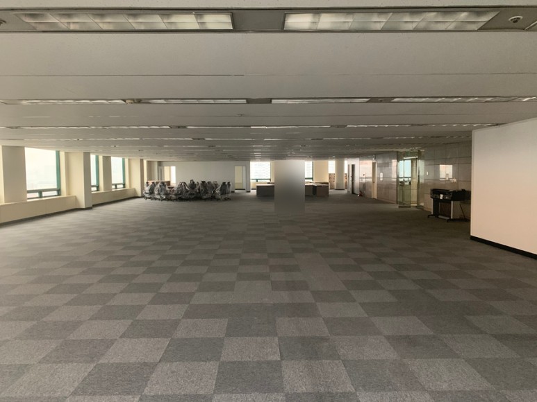 이 넓은 공간에 책상, 가구, 수납장등이 배치가 아직 안되어 휑한 모습입니다.