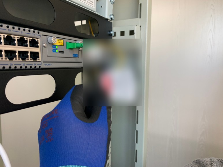 각 자리에 맞게 키폰전화기를 배치하기 위해 단말기마다 주기를 하고, OFD 장비를 허브렉에 시설하고, 광케이블에 접속하는 모습입니다.