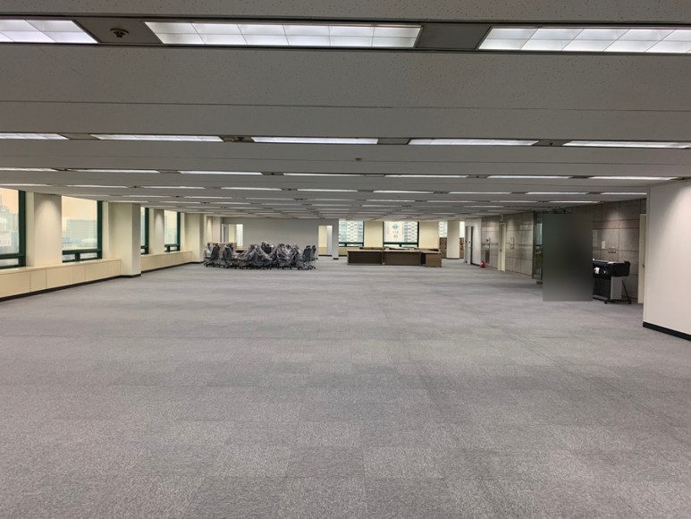 이 넓은 공간에 책상, 가구, 수납장등이 배치가 아직 안되어 휑한 모습입니다.