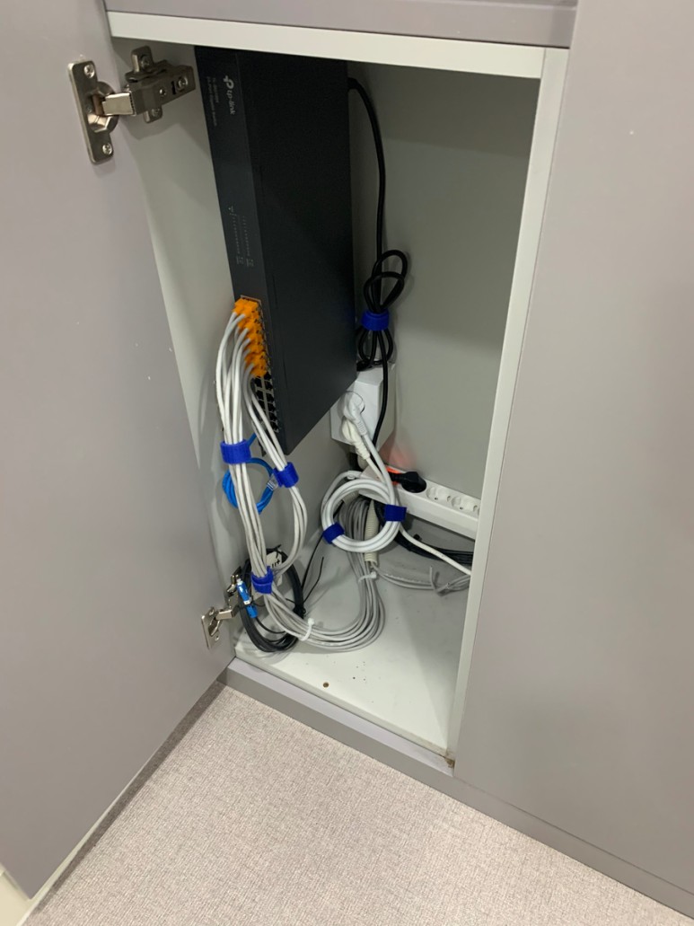 스위칭 허브 부착 및 랜선 선정리를 최대한 깔끔하게 해드렸습니다.