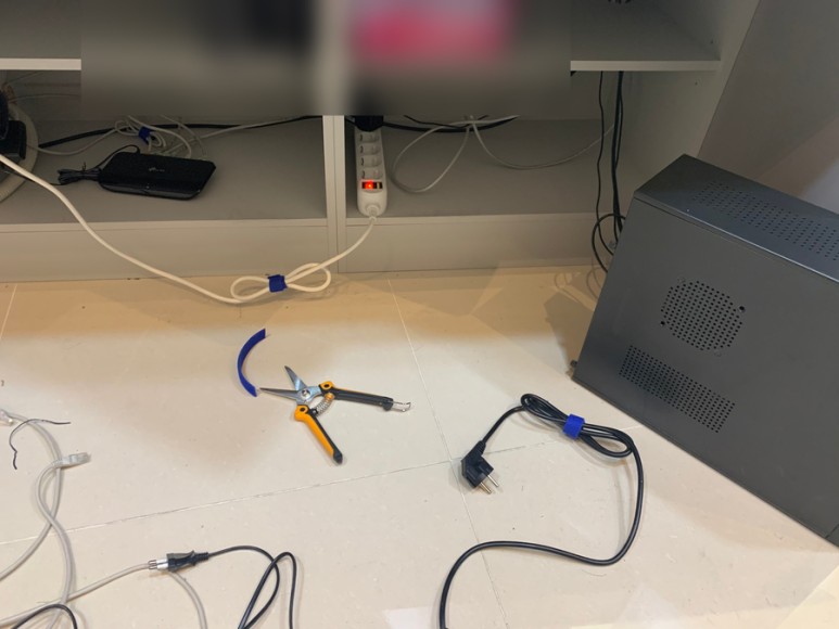 접수대 밑 허브를 설치하여 각 종 PC 및 공유기, POS기에 통신이 가능하도록 포설 후 선정리를 해드리고 있는 모습입니다.