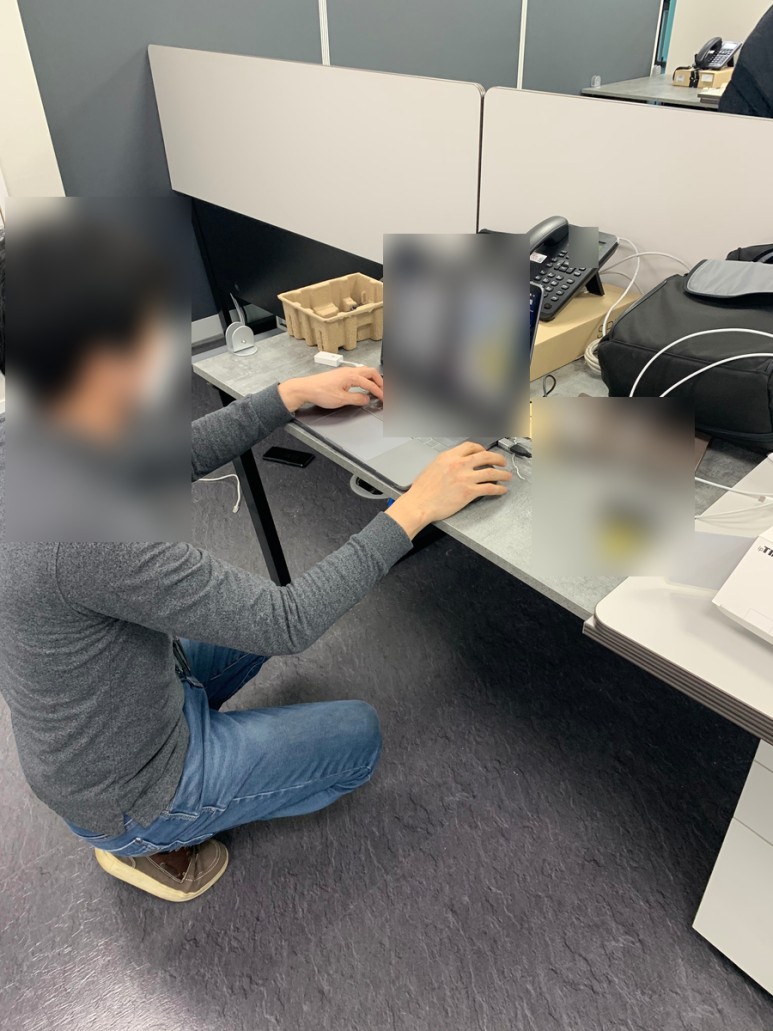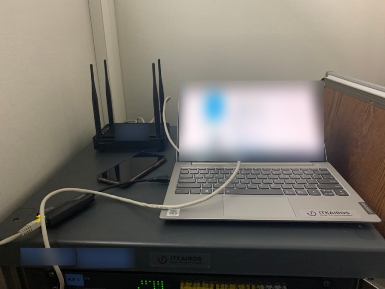 저와 팀장님께서 내부망 VoIP/DATA 이원화를 위해 네트워크 설정 및 최적화를 위해 PC를 연결하여 설정해드리고 있는 모습입니다.