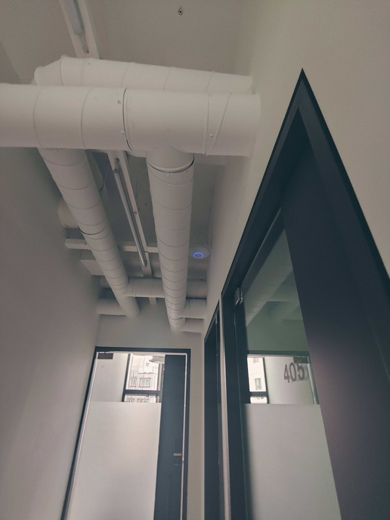 하나의 통합된 SSID로 각 층을 옮겨다녀도 끊김없이 무선 네트워크를 활용할 수 있습니다. 트레이를 통하여 전원선을 공급하였기에 깔끔한 마무리가 가능하였습니다. 각 층의 랜 테스트 및 주기 불량난 랜 포트 모두 해결해 드렸으며, 마지막으로 안정화까지 확인한 뒤 물러나도록 하였습니다. 이상입니다.