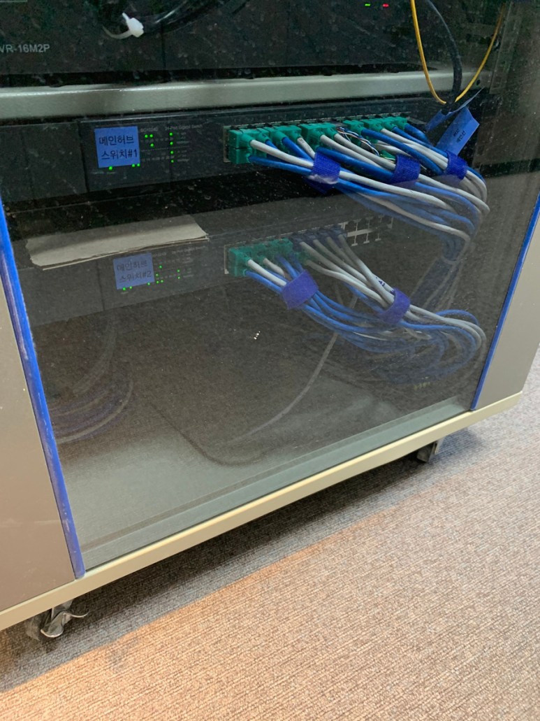 메인 위치에는 깔끔하게 안전하게 통신장비를 보관할수 있는 허브렉을 시설해드리고, 각 장비, 랜선마다 주기를(유지보수 용이)하였으며 인테리어 업체에서 단순 포설된 랜선의 단선 + 랜아울렛 불량 + 장애를 처리해 드렸습니다.