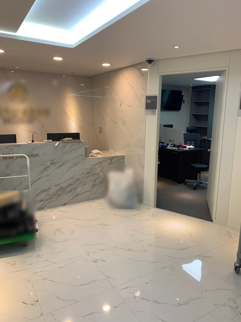 어느정도 인테리어가 마무리된 고객사 내부 모습입니다. 고객사 내부 구조를 고려하여 출입 통제와 CCTV의 설계가 이루어집니다.