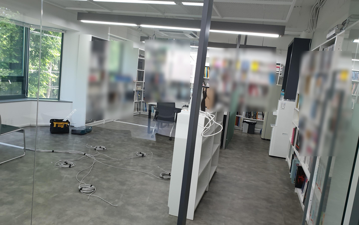 - 일부 책상이 들어오지 않은 자리는 고객님 요청으로 예상위치에 맞게 랜선 포설