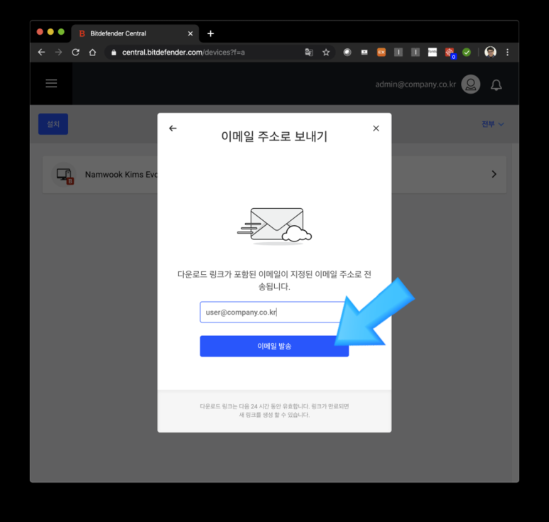 ⑦ 설치 대상 사용자의 이메일 주소를 입력한 후 [이메일 발송]을 클릭
