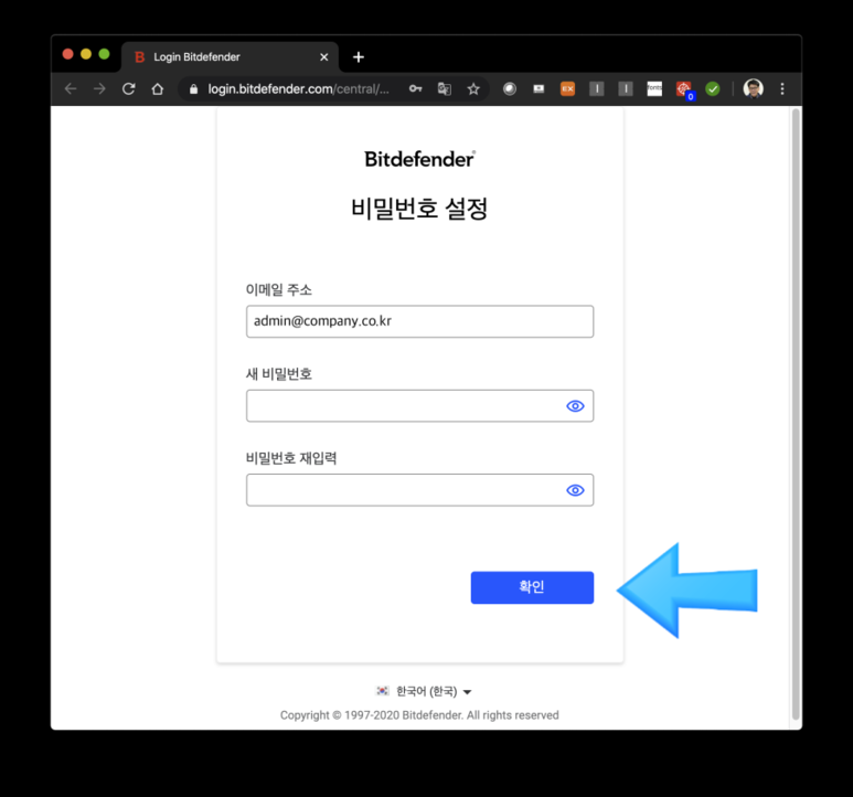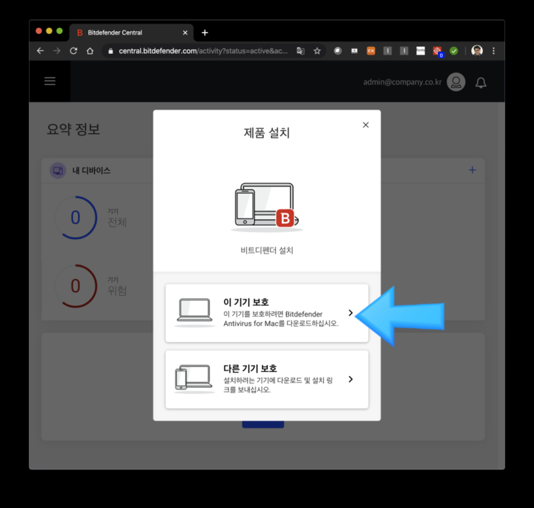 2. Bitdefender CENTRAL에 로그인
