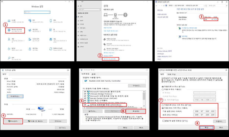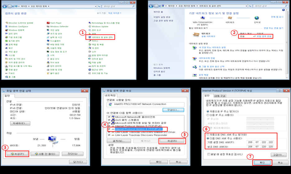 (기본 DNS 208.67.222.222 보조 DNS 208.67.220.220)