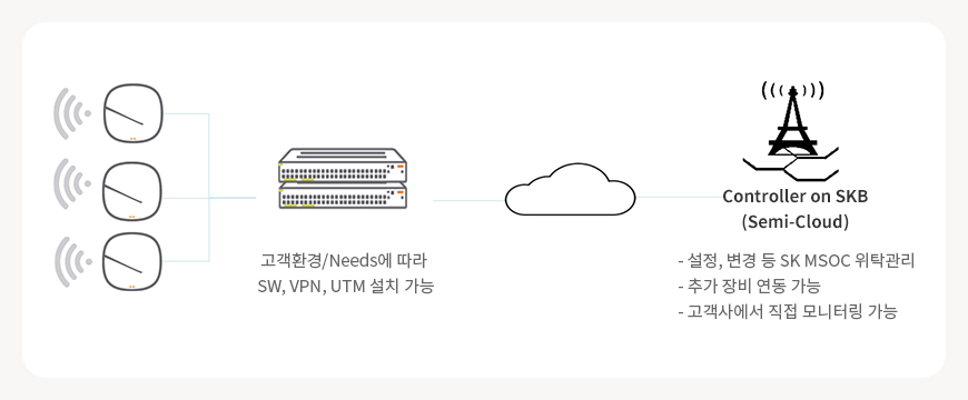 - 고품질의 Wi Fi 무선 네트워크 환경을 제공하고 운영, 유지보수까지 한번에 제공 하는 서비스