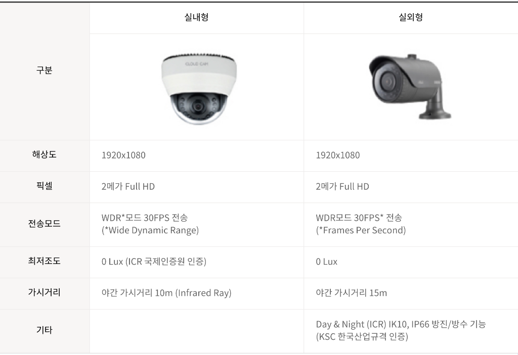 * 저장 화질 및 저장 기간 : 기본 15일 연속 저장, 화질 1080p (1920x1080p), 15FPS