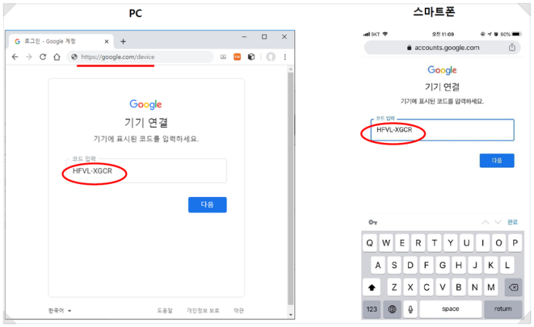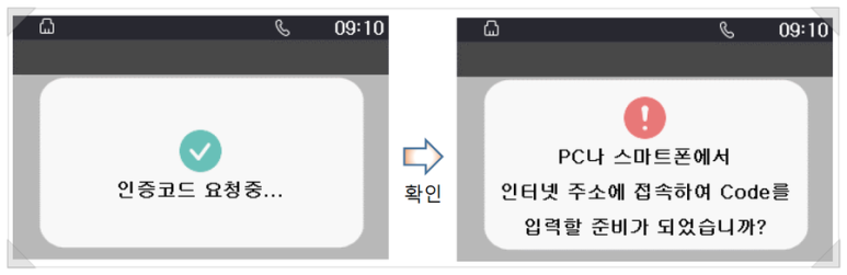 PC나 스마트폰의 '웹 브라우저에' 아래의 인증 주소에 접속하여 인증코드를 입력합니다.