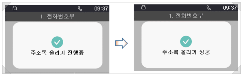 구글 주소록 연동이 완료되면 전화 수신 시 LCD 화면에 등록된 이름이 표시됩니다.