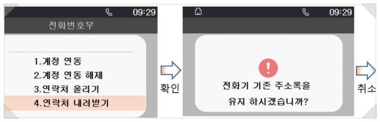 구글 주소록 연동이 완료되면 전화 수신 시 LCD 화면에 등록된 이름이 표시됩니다.