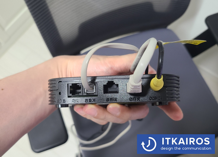 2) 일단 전원 선, 랜선(RJ45), 팩스 선(RJ11)을 MTA에 연결합니다.
