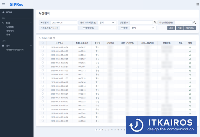 전화 통화는 자동으로 녹취되어 홈페이지를 통해 쉽게 검색 및 다운로드가 가능합니다.