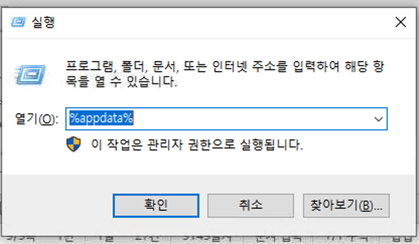 윈도우키 + r 눌러 실행 창에 %appdata% 입력 후 엔터