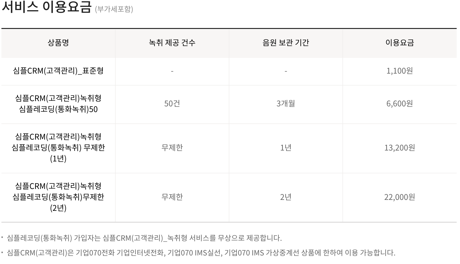 심플CRM(고객관리)_녹취형 서비스를 사용하시기 위해서는 심플레코딩(통화녹취) 서비스를 필수로 가입하셔야 합니다.