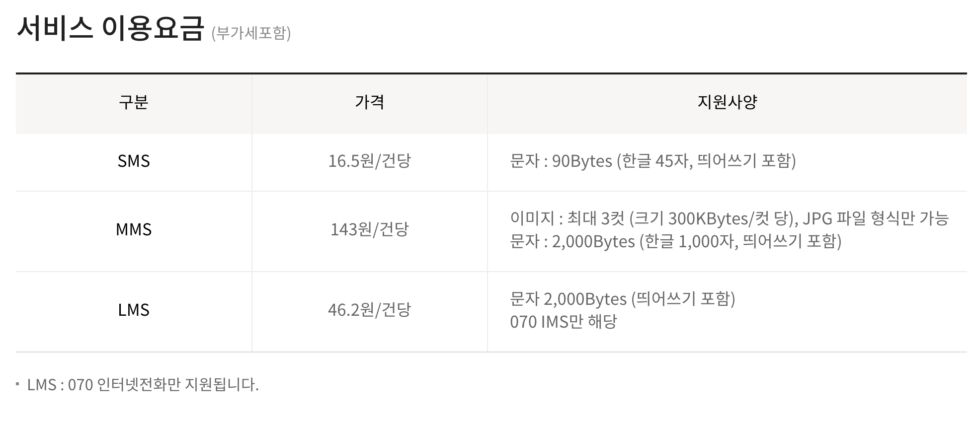 * 메시지 발신료는 기본료와 별개로 과금되며 쓰시는 만큼 부과되는 종량제입니다.
